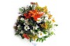Arranjos de flores com lirios, astromélia, gerbera, flor do campo, aster, tango e murta com lindo vaso de vidro